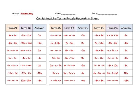 Web Use This Combining Like Terms Puzzle As A Math Center Activity To Practice Combining Positive And Negative Like Terms.print The 21 Puzzles On Cardstock (And Laminate For.