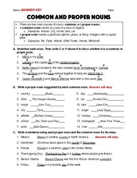 Common And Proper Nouns Answer Key. Read the following sentences and identify the common or proper nouns in them. Some of the worksheets for this concept are common and proper nouns,.