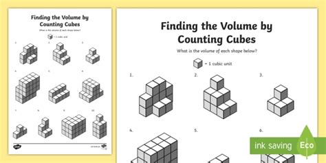 There are no hidden cubes on this worksheet. Count the number of cubic units in each shape and write the volume. We have split our worksheets up into different sections, to make it easier for you to select the right sheets for your needs.