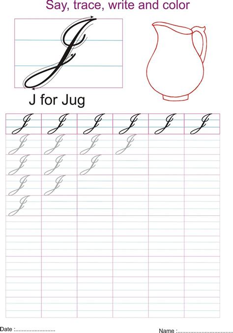 Web Kids Can Learn Cursive Capital J On Printed Worksheet By Handwriting Style That Is Free Printable And Easy To Practice Cursive Writing On Sheet.