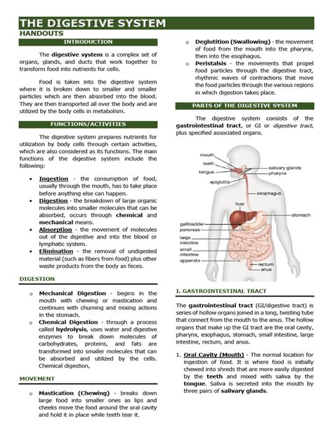 Functions Of The Digestive (Gastrointestinal) System: